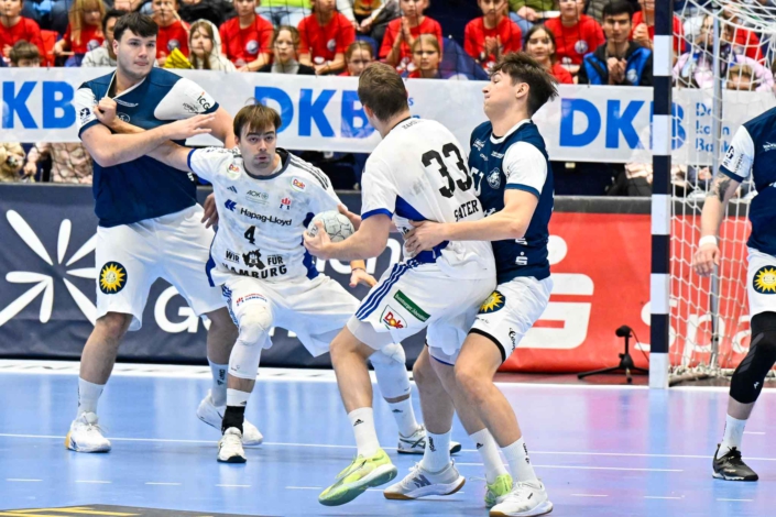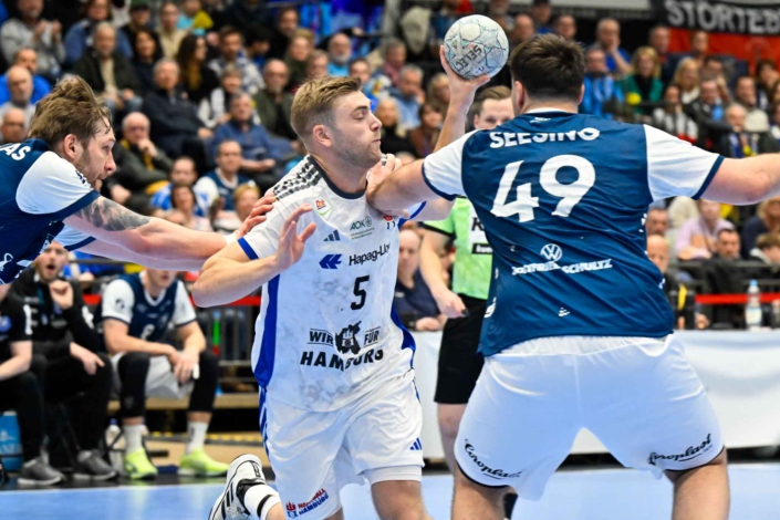 Moritz Sauter verkürzte zwar noch einmal auf 31:33, und Mortensen traf per Siebenmeter zum 32:34. Hamburg hatte sogar die Chance, nochmal auf ein Tor heranzukommen, doch Lassens riskanter Pass an den Kreis fand keinen Abnehmer. Als Johannes Wasielewski eine Minute vor Schluss zum 35:32 traf, war die Partie endgültig entschieden.