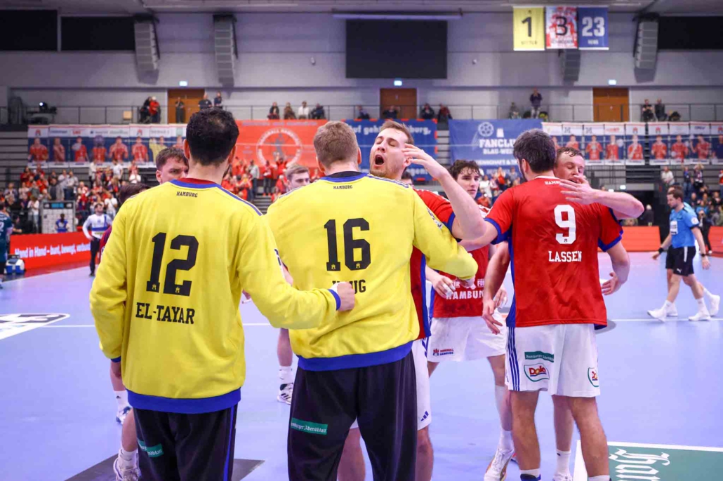 Als Robin Haug drei Minuten vor dem Ende Felix Aellen einen Siebenmeter abkaufte und Niklas Weller kurz darauf zum 30:26 einnetzte, kochte die Sporthalle Hamburg – der Heimsieg rückte immer näher. Moritz Sauter setzte zwei Minuten vor Schluss mit seinem siebten Treffer zum 31:27 endgültig den Deckel drauf.