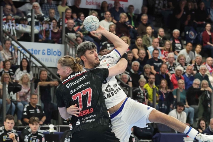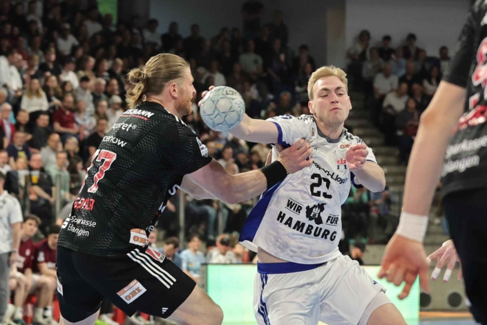 Gelungene Auswärtsreise für den Handball Sport Verein Hamburg in die PSD Bank Nürnberg ARENA: Vor 7.213 Zuschauern siegte das Team von Trainer Torsten Jansen mit 31:23 (16:10) gegen den HC Erlangen. Dabei durfte sich Frederik Bo Andersen ganz besonders freuen: Dem Dänen gelang in der ersten Hälfte sein 500. Handball-Bundesliga-Tor (ohne Siebenmeter). Insgesamt kam der Rechtsaußen der Hanseaten sogar auf sieben Treffer – genau wie Moritz Sauter, der damit bei der Begegnung mit seinem Jugend-Verein auch besonders glänzte.